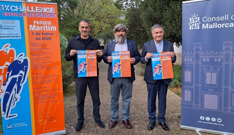 Vuelve la Challenge Escolar Consell de Mallorca, una carrera dirigida a los jóvenes ciclistas, que el 2026 llega a la novena edición con el apoyo de la institución insular. Hoy se ha presentado el circuito, que tendrá lugar el domingo 1 de febrero en el Paseo Marítimo, a partir de las 10.45 horas. Participarán cuatro categorías femeninas y masculinas, diferenciadas por nivel: alevín (6 km), infantil (9 km), cadete (18 km) y una cuarta de Promesas y principiantes. Criterium y habilidad. Como novedad, el circuito vuelve al Marítimo, y aumenta la dificultad: más quilómetros de carrera en las diferentes categorías.